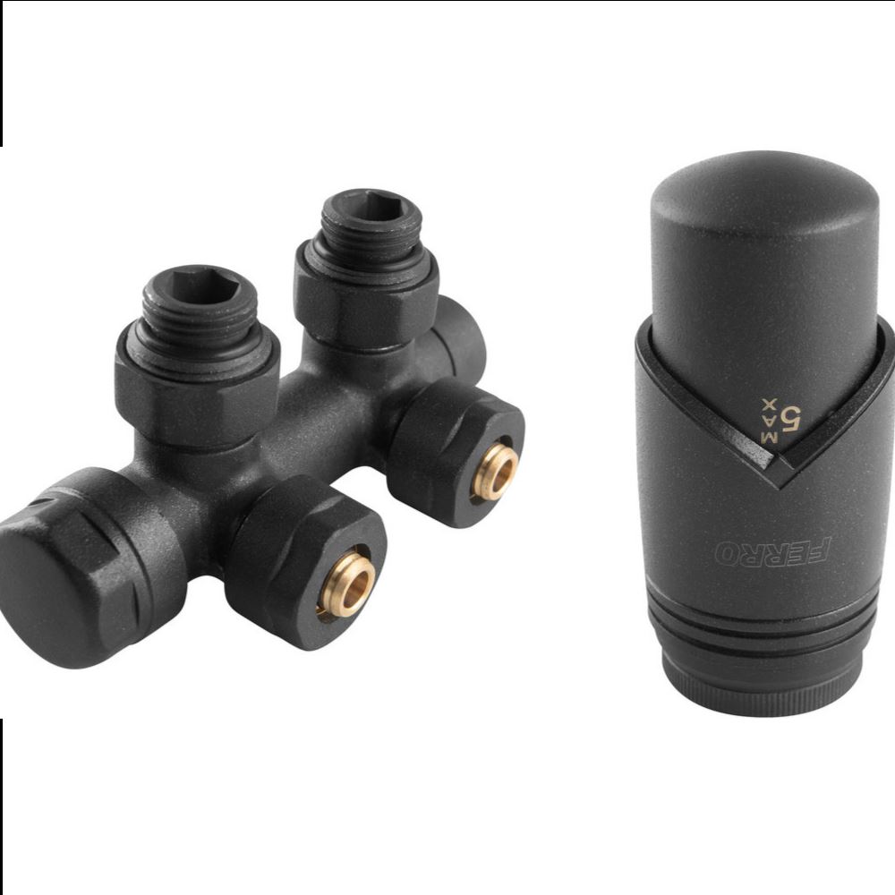 Zestaw termostatyczny Ferro 8-29 st.C 3/4 zespolony kątowy antracyt
